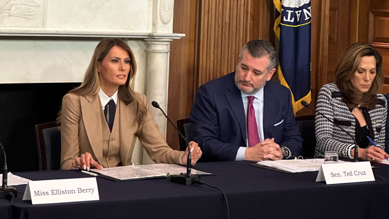 Melania Trump was joined on Monday by a 15-year-old girl, Elliston Berry, whose high school peers used AI to create nonconsensual imagery of the young girl and spread them across social media, the first lady explained.