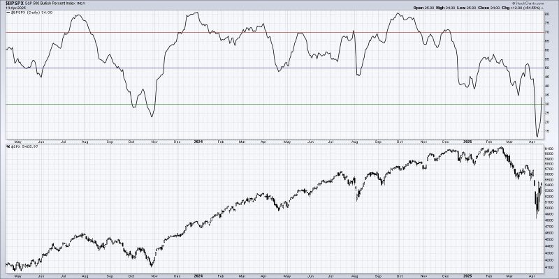 At the end of September 2024, the S&P 500 Bullish Percent Index showed a reading just above 80%. By early December, the indicator was down to around 70%, and at the February 2025 high had reached 55%. Last week, the S&P 500 Bullish Percent Index was just above 10%. Indeed, almost all of the S&P 500 members were in confirmed point & figure downtrends.