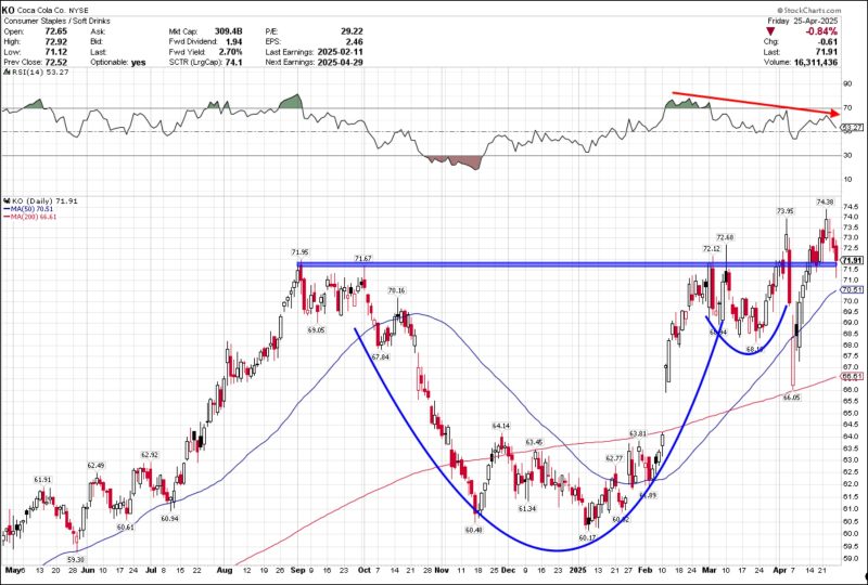 Last week, investors shifted back into Technology and Consumer Discretionary and away from Consumer Staples. Shares of KO also fell as a result and now sit at an interesting level heading into its earnings release.