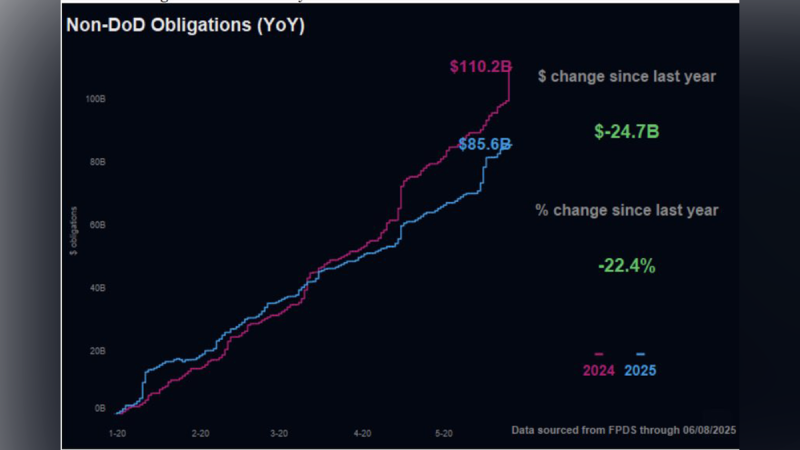 As of June 8th, annual non-defense federal obligations are down 22.4%, or ~$25B, as compared to 2024, DOGE announced on X.